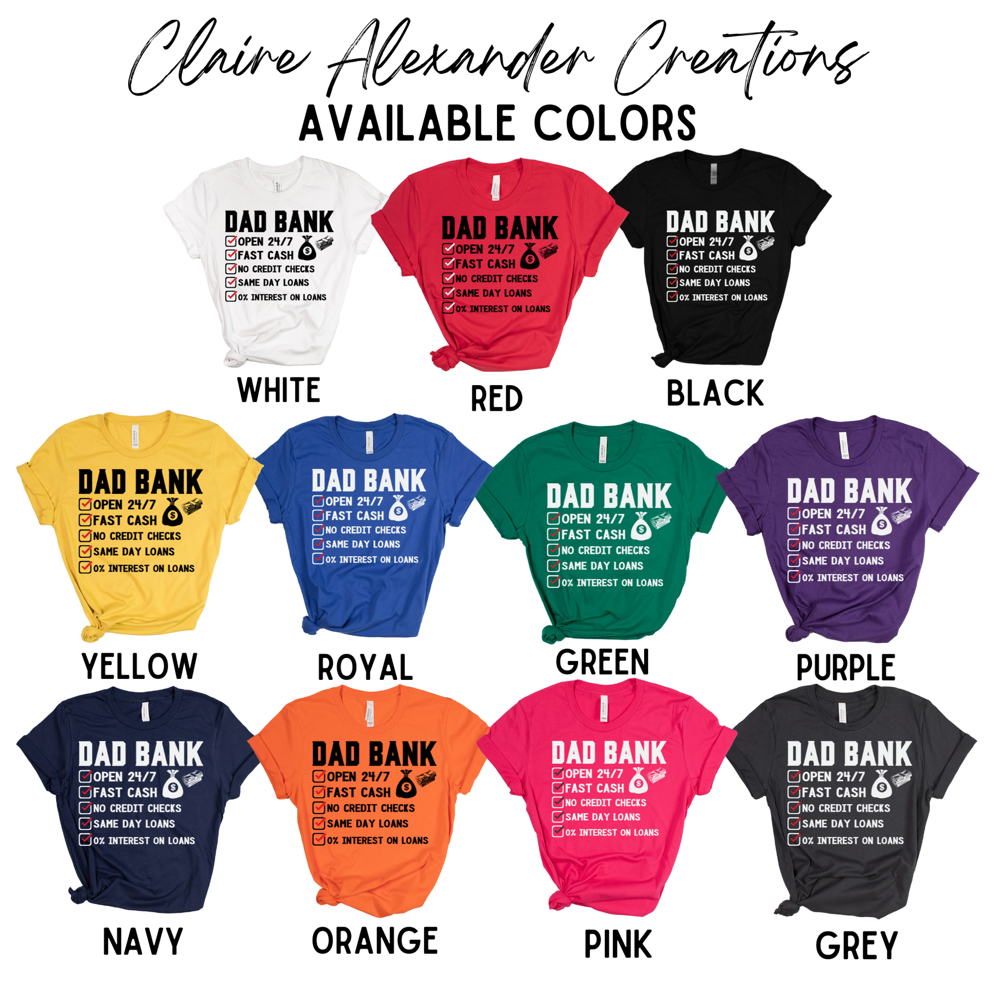 Celebrate the always-open generosity of Dad Bank! Get this fun and fitting tee for the ultimate provider in your life today.