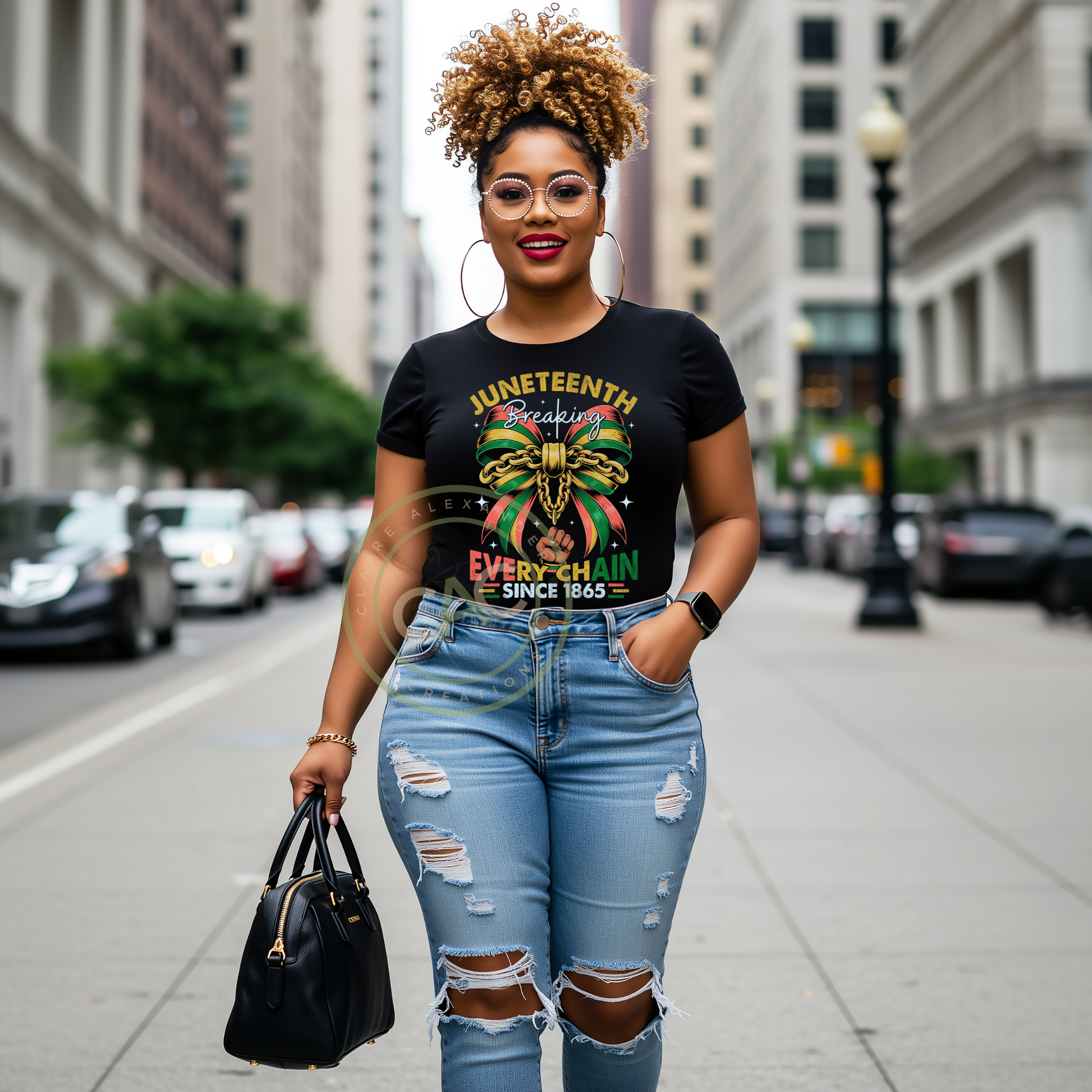 This Juneteenth, make a powerful statement with our exclusive "Breaking Every Chain Since 1865" tee. Designed for the woman who honors her history and stands for progress, this black tee is more than just apparel – it's a declaration of freedom, resilience, and the ongoing journey towards true equality.