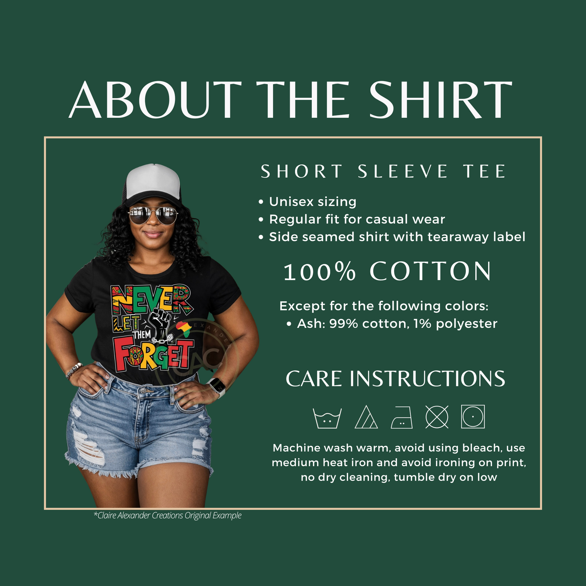 - Care Instructions: Machine wash cold, inside out, with like colors. Tumble dry low. Do not iron directly on design.