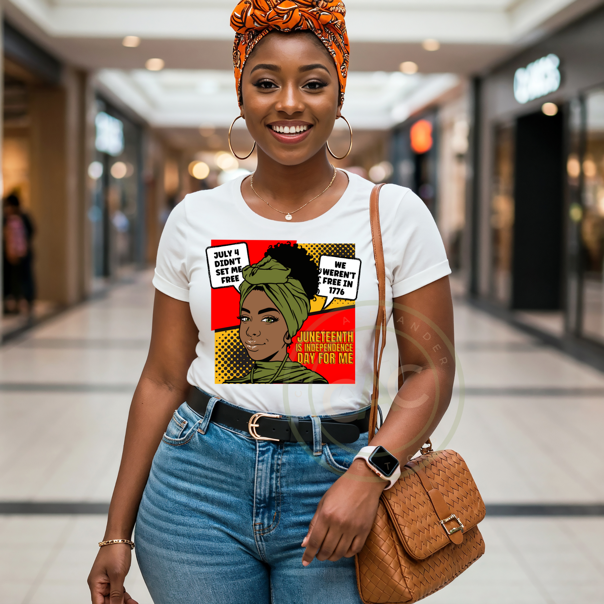 For countless individuals, true freedom did not arrive in 1776. This powerful tee boldly articulates that crucial historical distinction with the statement: "Independence Day for Me. My Ancestors Weren't Free in 1776." It's a vital declaration, correcting the historical narrative and celebrating the true moment of liberation for those whose ancestors were enslaved. Available in two design versions to express this profound message.