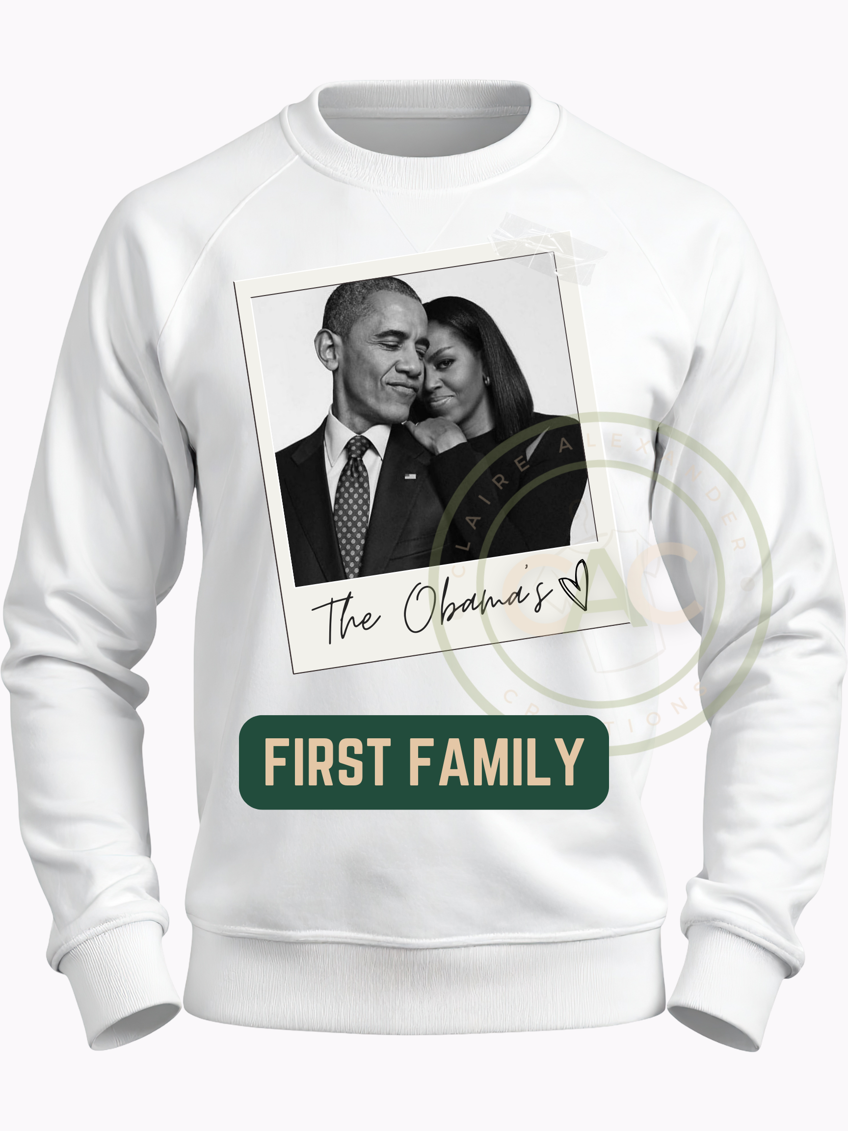 Redefine your wardrobe with a piece that blends cultural legacy with contemporary streetwear. The First Family Edition is an exclusive, original creation by Claire Alexander Official, designed to celebrate the enduring impact of the Obamas through a curated "Vintage Polaroid" lens.