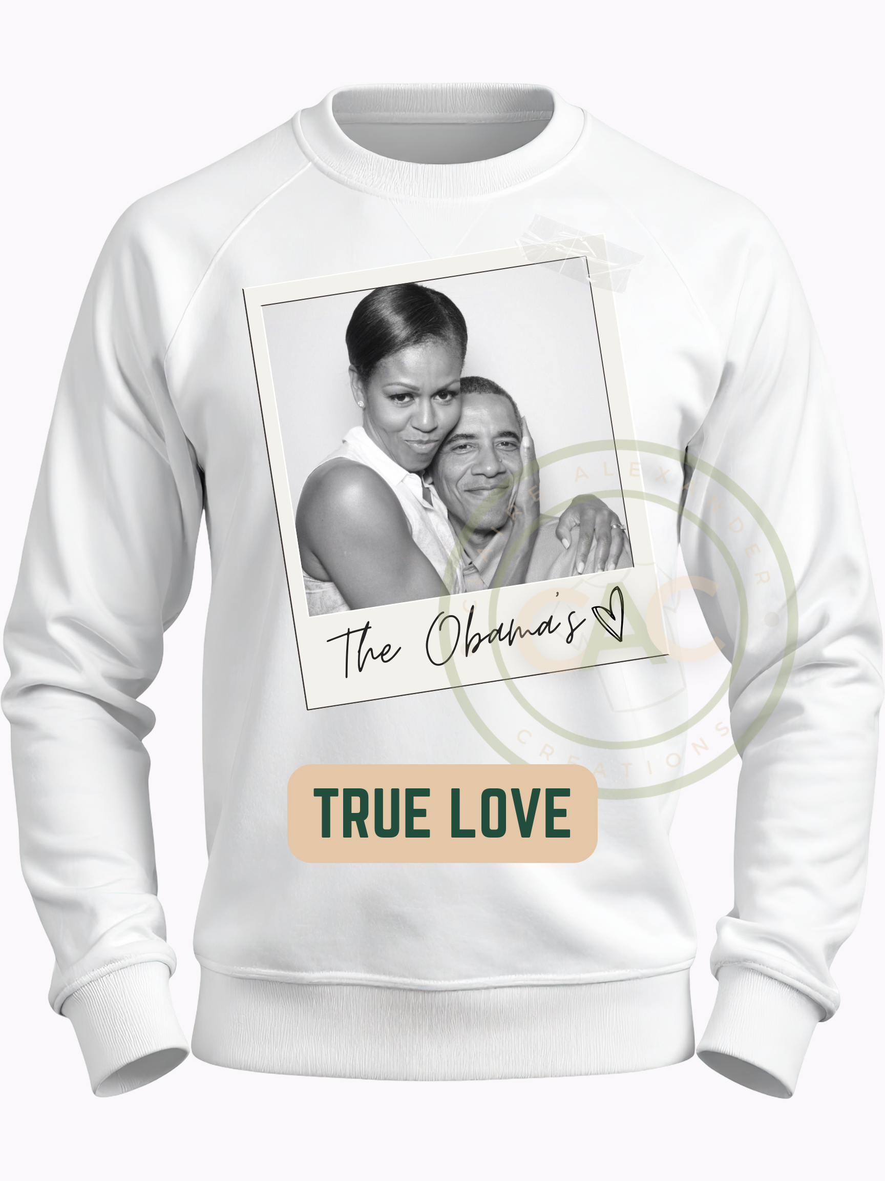 Redefine your wardrobe with a piece that blends cultural legacy with contemporary streetwear. The True Love Edition is an exclusive, original creation by Claire Alexander Official, designed to celebrate the enduring impact of the Obamas through a curated "Vintage Polaroid" lens.